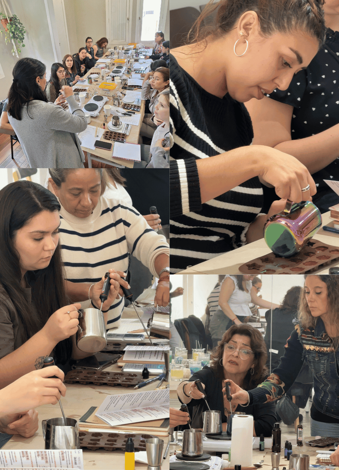 Domina la cera de soja, fragancias y acabados perfectos. Te llevas 3 productos terminados, materiales incluidos y certificado.